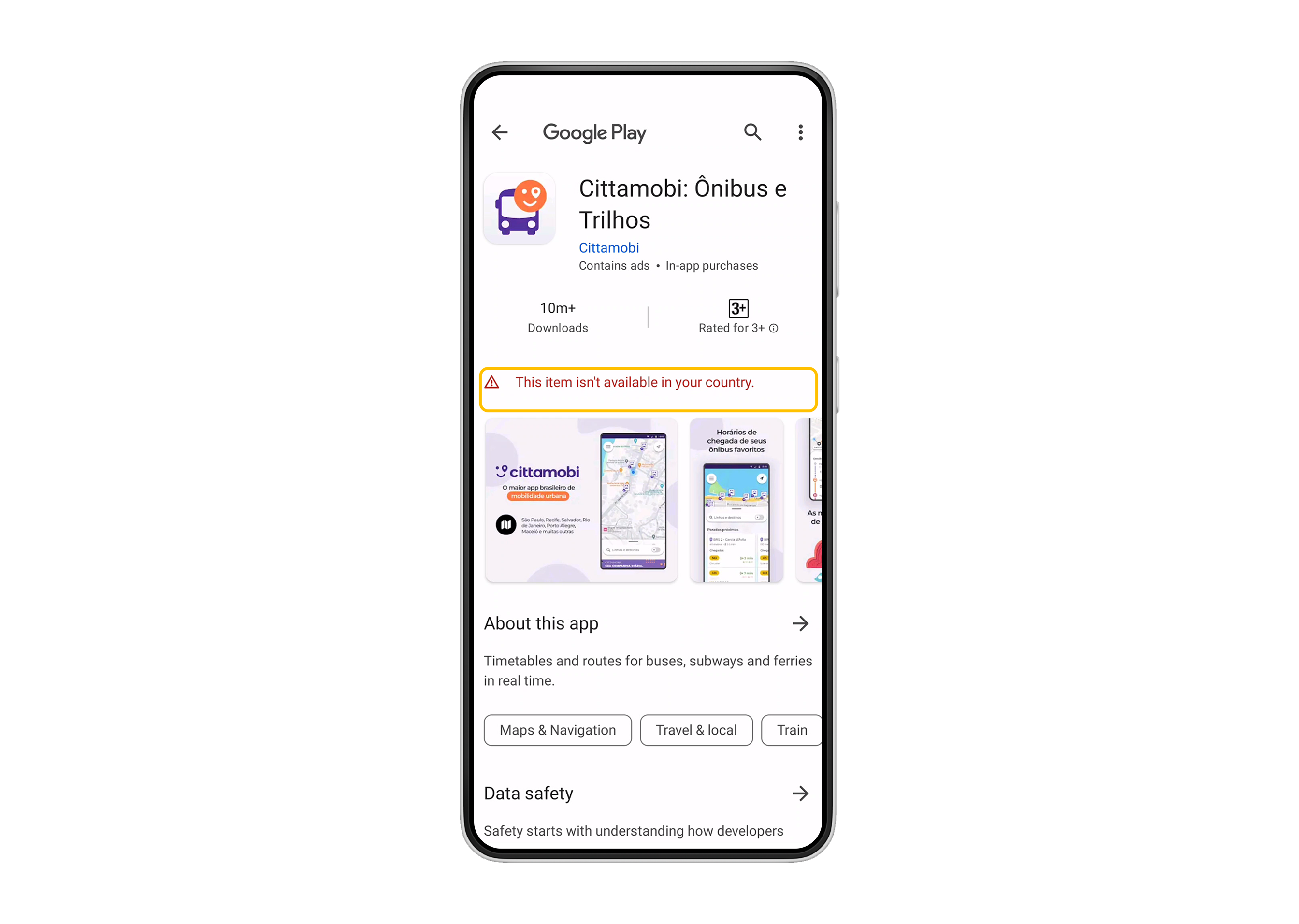 Why does Google Play Store show “This item isn't available in your country” after searching for an app? Problem Example: