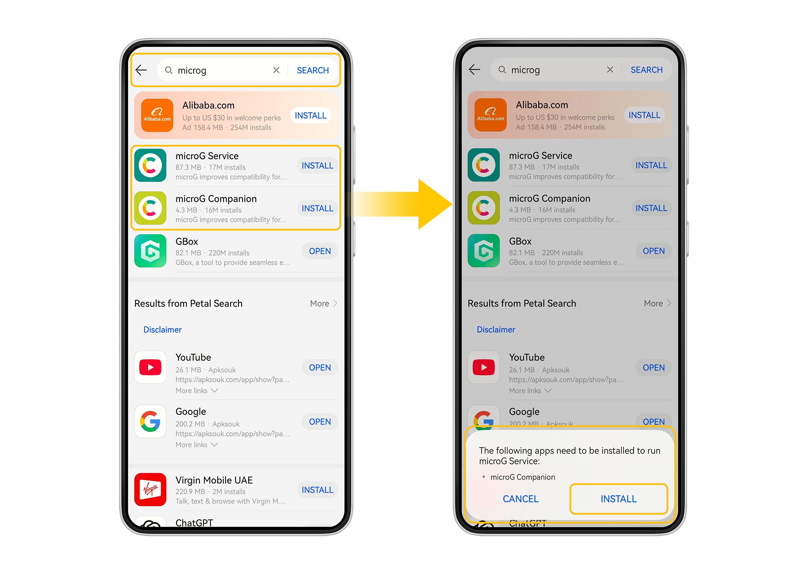 Шаг 1: Найдите и установите microG через магазин Huawei AppGallery.