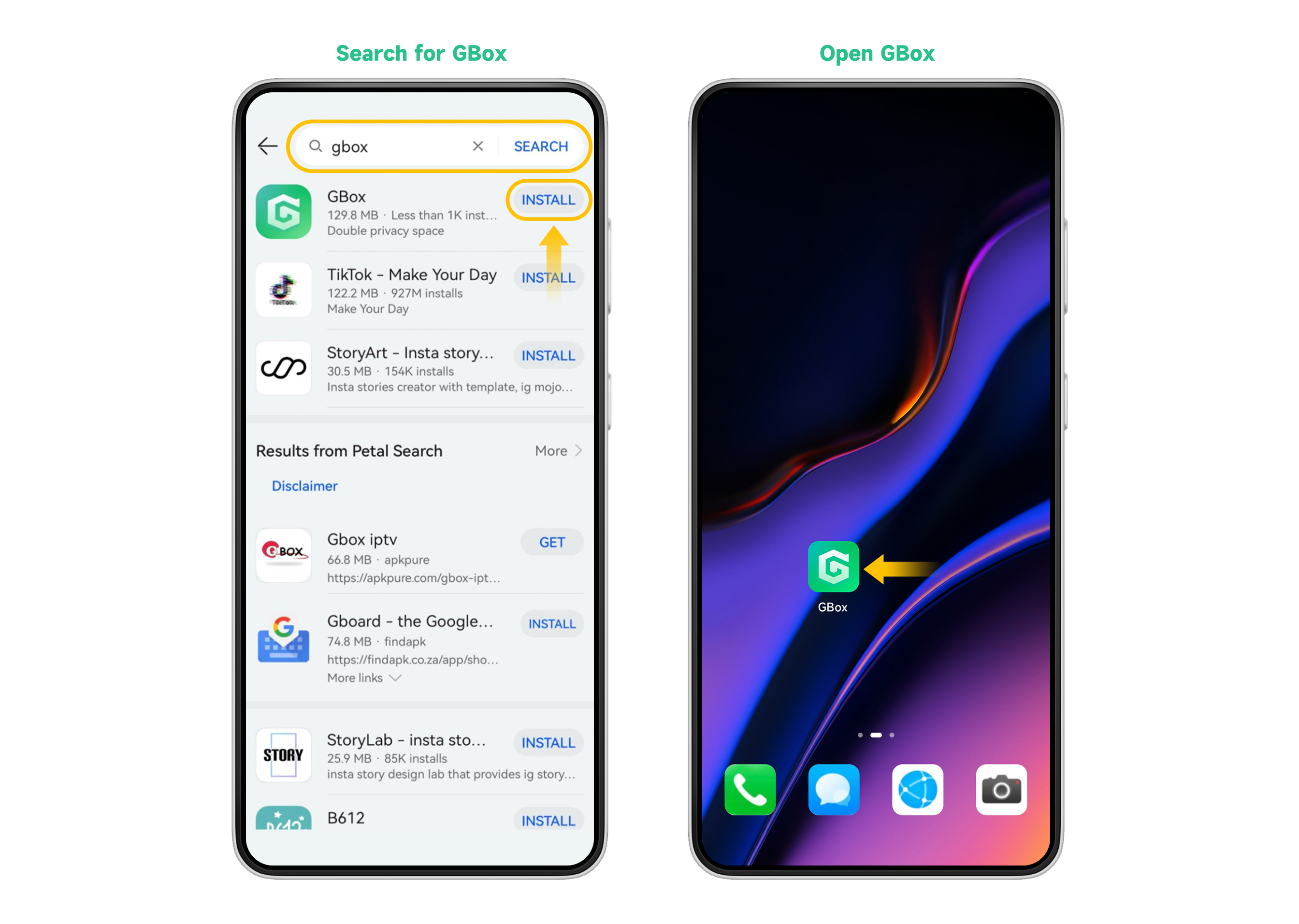 1.Search and install GBox from the app market on your phone. Open GBox once the installation finished.