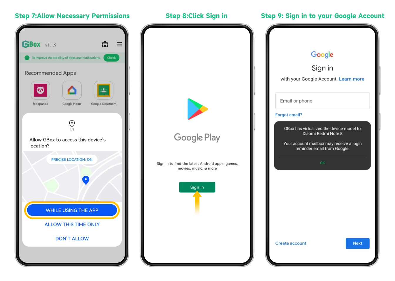 3.Allow all permissions. Sign in to your Google account.